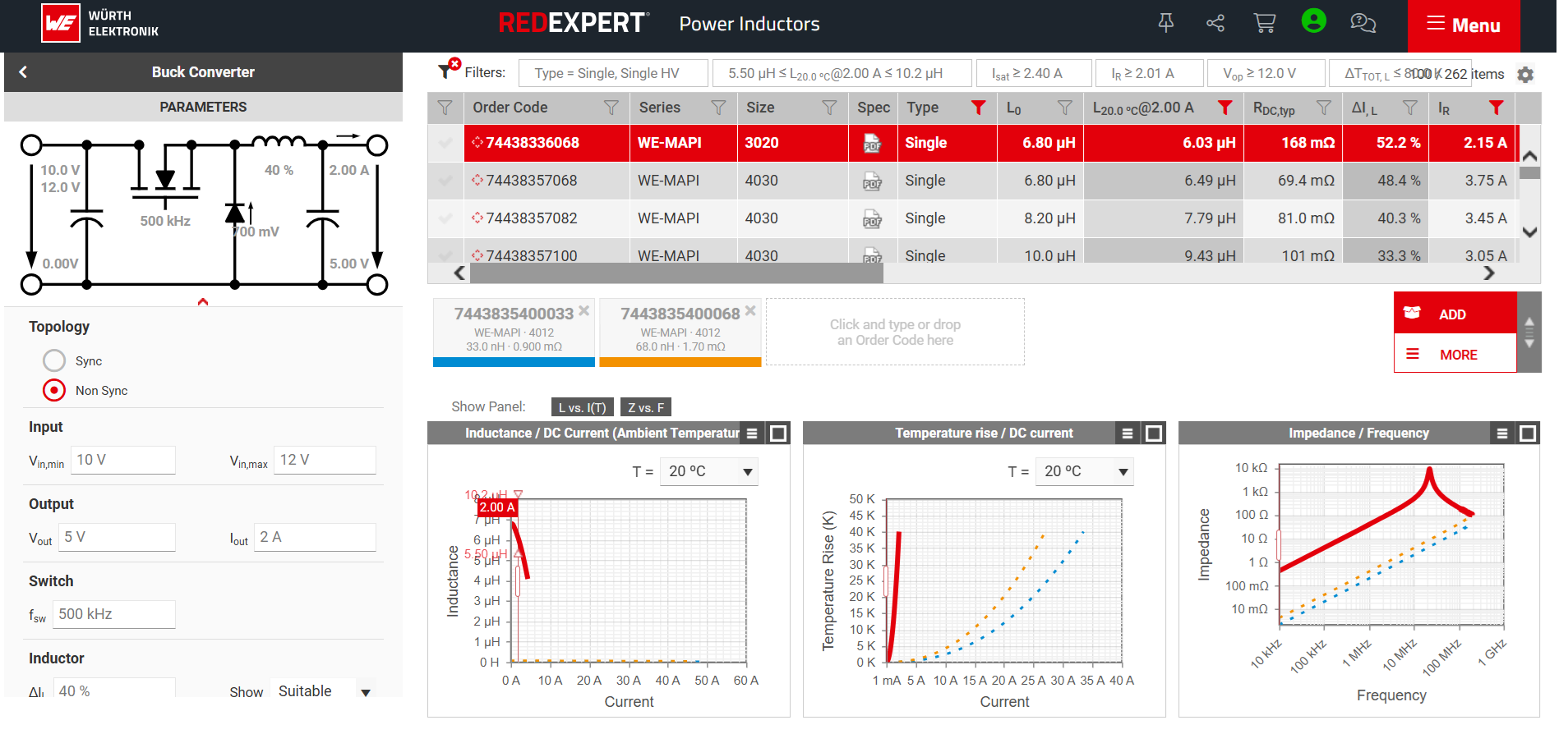 Balancing the “must have” and “nice to have” objectives can be frustrating due to the number of variables and their often non-linear interactions. That’s where Würth Elektronik’s REDEXPERT tool saves designers time while showing them viable options. Among other considerations, REDEXPERT facilitates AC- and DC-loss modeling and optimal inductor selection for the WE-MAPI family of inductors (Figure 1).[1]