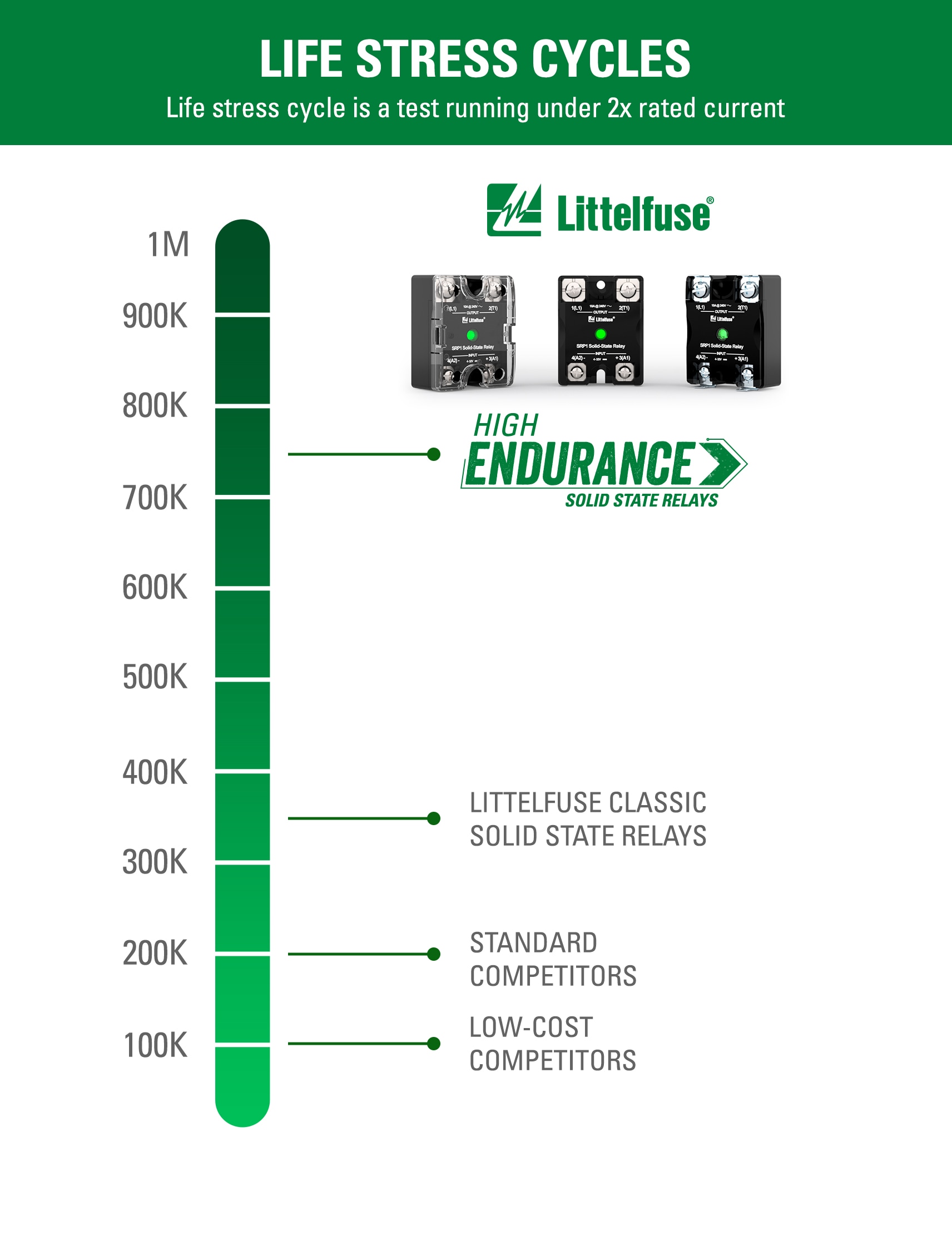 Figure 1: Littelfuse’s SRP1 high-endurance SSRs deliver enhanced reliability, boasting life cycles two to three times higher than those of other relay options in demanding conditions.. (Source: Littelfuse)