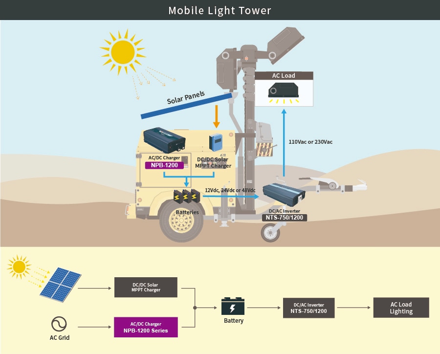 MEAN WELL Chargers and Inverters cover products with 30W to 3200W power ratings and can be used in various systems with one another. The charges provide AC/DC to charge the battery, while the inverter converters power from the battery to AC to power AC equipment. These chargers and inverters from MEAN WELL are suitable for green energy storage, power backup, charging devices, and other related equipment.