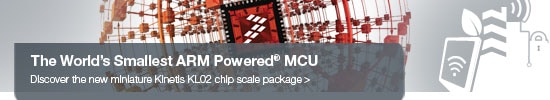 Freescale's Kinetis KL02 Chip Scale Package (CSP) ARM Cortex-M0+ MCU is the world's smallest ARM powered MCU which is built on the ARM Cortex-M0+ processor and combines the world's smallest package size with unparalleled energy-efficiency and feature integration. This MCU package uses 25% less PCB area than the nearest competing product with 60% more GPIO. Energy-saving architecture is optimized for low power with 90nm TFS technology, clock and power gating techniques, low power boot option, bit manipulation engine, peripheral bridge crossbar and zero wait state flash memory controller. Several, flexible power modes fit for different application use cases designed to maximize battery life. It also includes a rich mix of connectivity, analog and timers not found in any other MCU of it's kind.